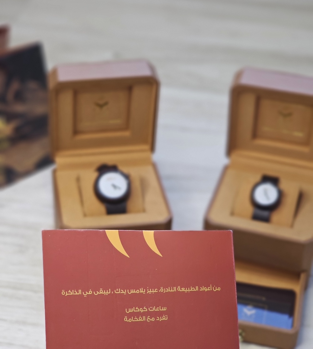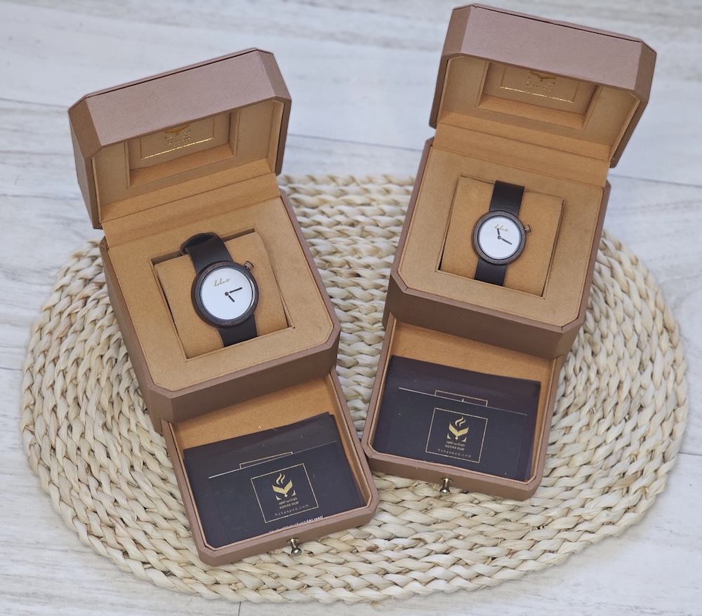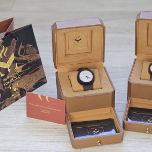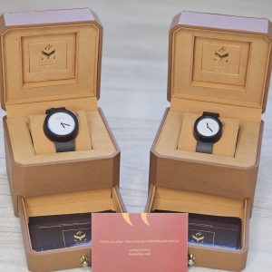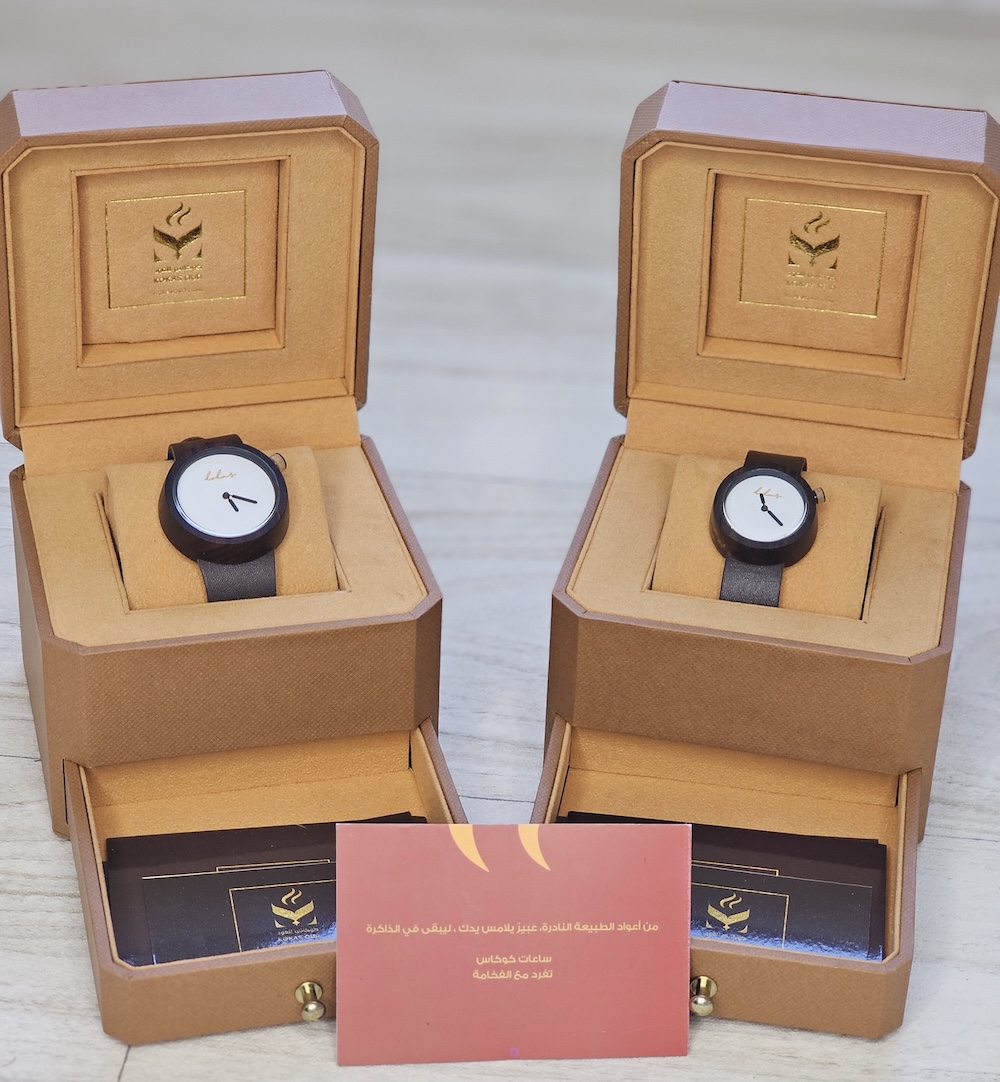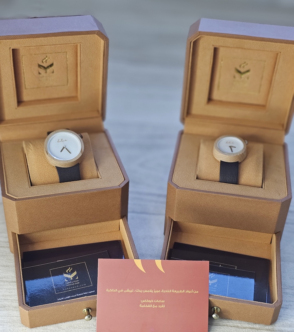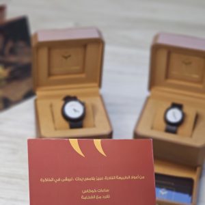 5. إمكانية نقش اسم مخصص على قرص الساعة، أو السوار، أو الغطاء الخلفي، أو حتى على علبة الخشب (للكميات فقط).