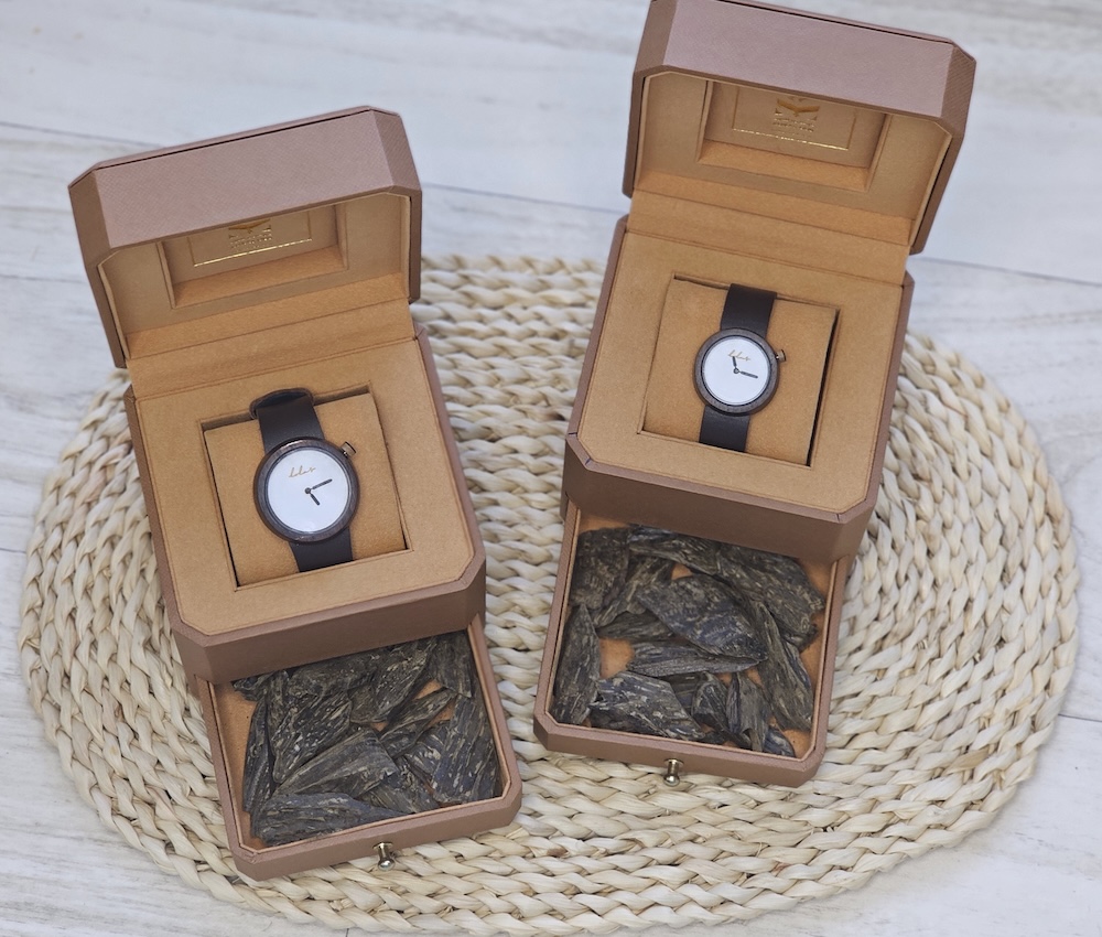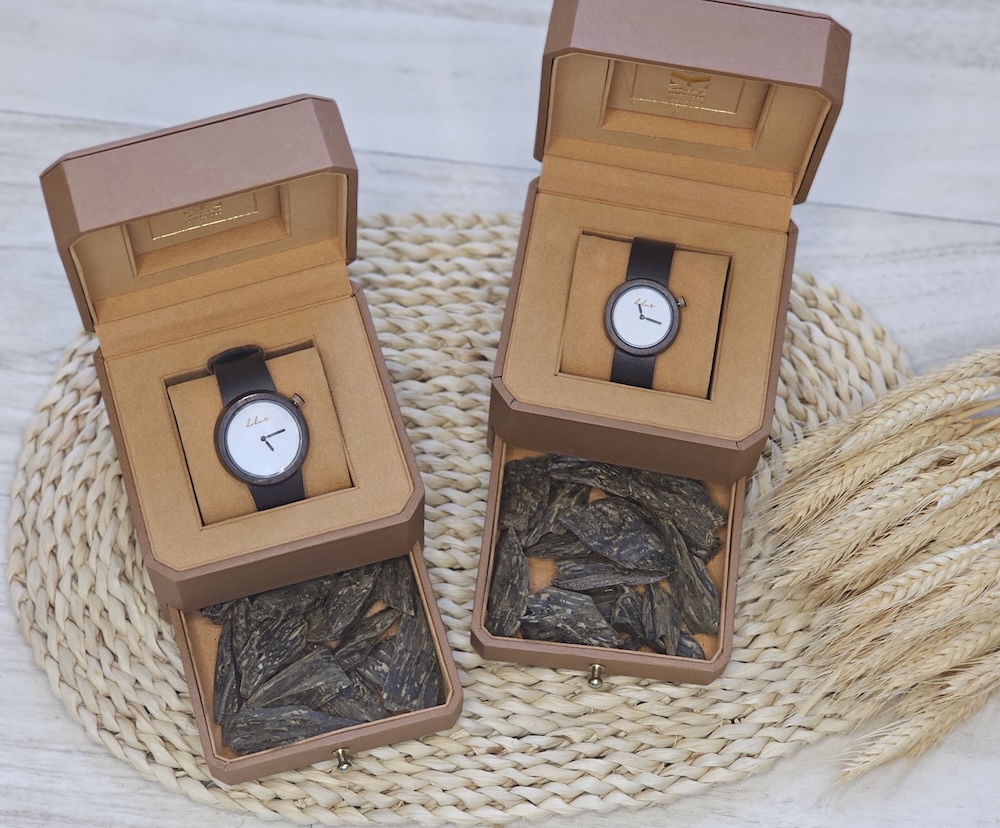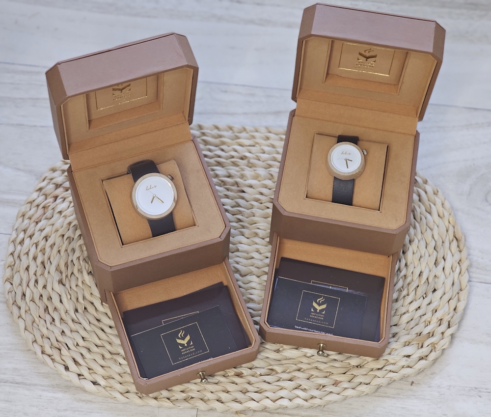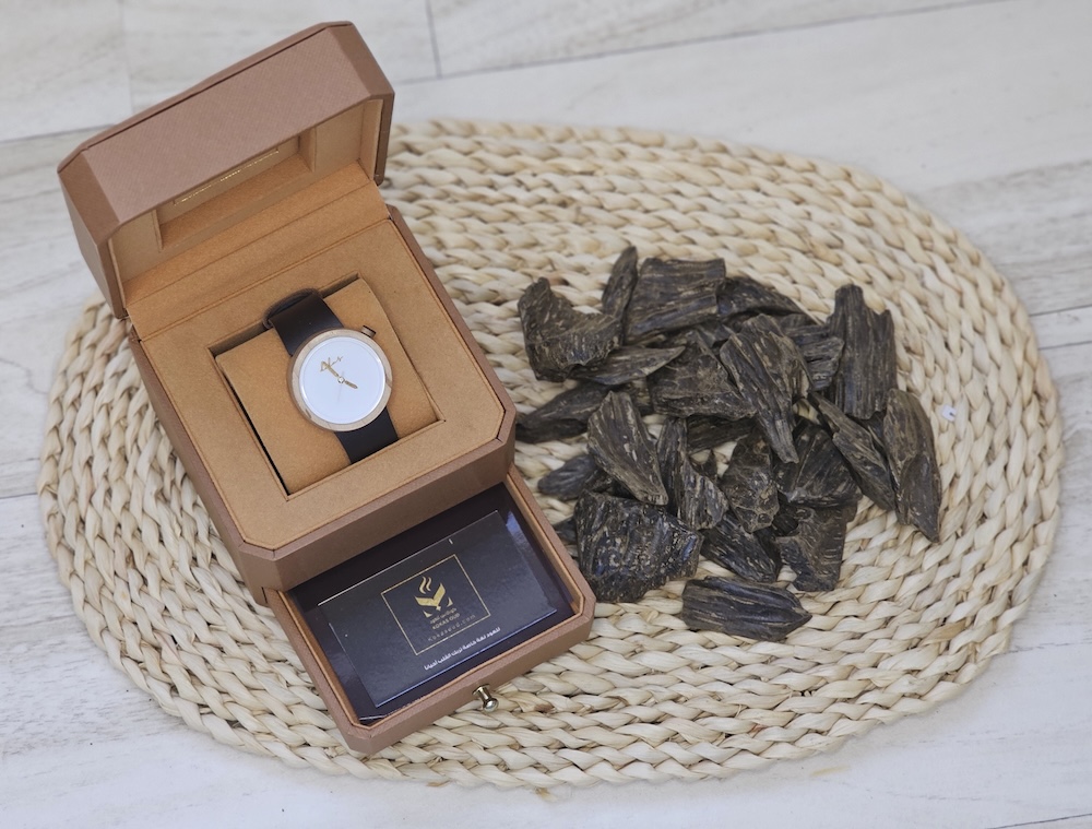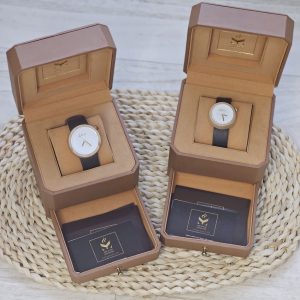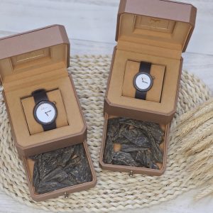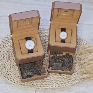 5. إمكانية نقش اسم مخصص على قرص الساعة، أو السوار، أو الغطاء الخلفي، أو حتى على علبة الخشب (للكميات فقط).