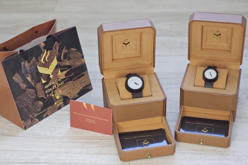 * مادة العلب: ورق كرتوني مع قماش ذات ملمس فاخر وخشب الروزوود (Rosewood)